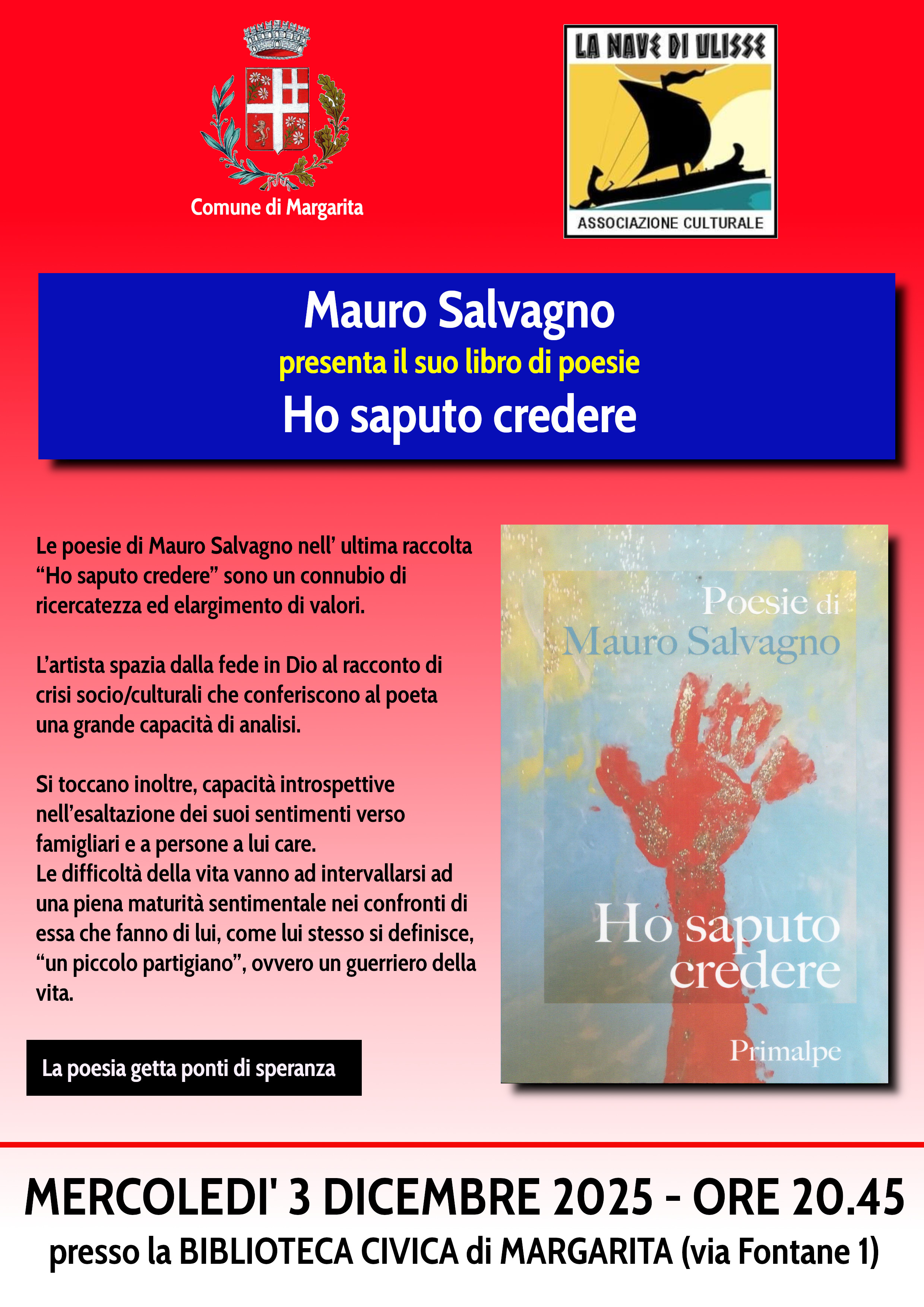 Presentazione della raccolta di poesie "Ho saputo credere" di Mauro Salvagno